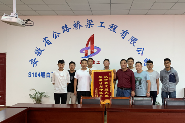 9月4日,寧國(guó)市交通運(yùn)輸局副局長(zhǎng)程紹忠一行為S104PPP項(xiàng)目送來感謝信和一面書寫著“抗臺(tái)救援顯大愛、危難時(shí)刻伸援手”的錦旗,對(duì)項(xiàng)目近期在支援地方抗洪搶險(xiǎn)中所做的貢獻(xiàn)表示感謝。