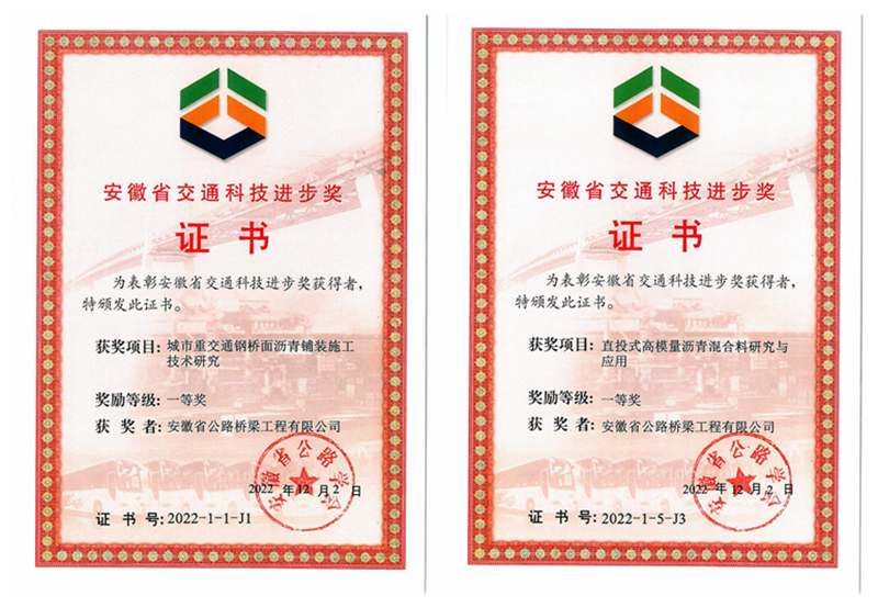 喜訊!公司兩項(xiàng)成果榮獲安徽省交通科技進(jìn)步獎(jiǎng)一等獎(jiǎng)