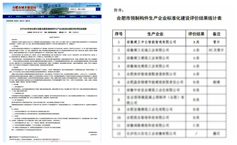5月6日,合肥市城鄉(xiāng)建設(shè)局發(fā)文通報,安徽建工中侖智能制造有限公司以全市第一名的成績榮獲2023年度合肥市裝配式建筑預(yù)制構(gòu)件生產(chǎn)企業(yè)標(biāo)準(zhǔn)化建設(shè)評價A類評價。這是中侖公司自成立以來,連續(xù)兩次榮獲該類別A類評價。
