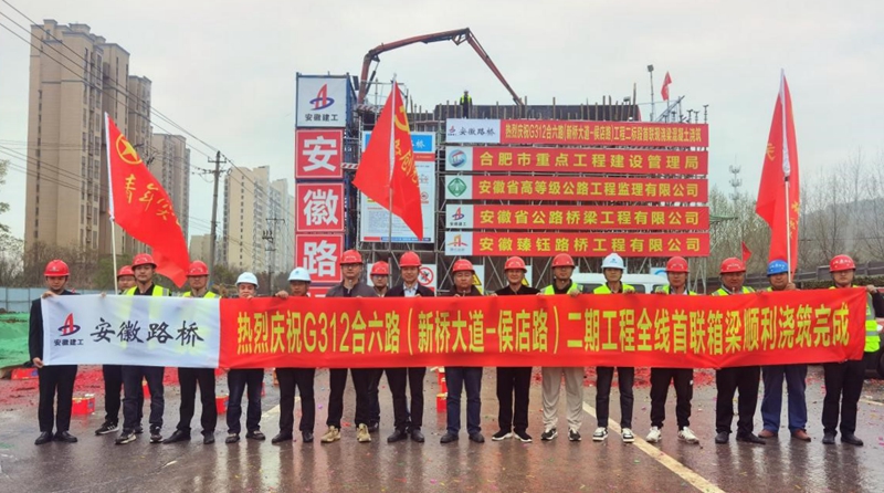 項目堅持以實干出成績,向時間要效益,以“開局即決戰(zhàn),起步即沖刺”的姿態(tài),跑出施工加速度。首根樁基開鉆、首根墩柱澆筑、首座承臺澆筑、首聯(lián)現(xiàn)澆箱梁澆筑……項目工期以及形象進度始終領跑全線。建設過程中,合肥新聞聯(lián)播以《安徽路橋G312:無懼“烤”驗 用汗水筑就城市之美》為題關注項目“高溫下的堅守”,中安在線、合肥日報、合肥晚報等主流媒體也高頻聚焦項目建設進展。