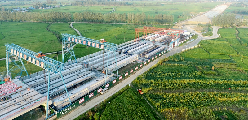作為項目建設的“重頭戲”,三個預制梁場建設與1000余片箱梁的預制和架設是保障項目工期的重要環(huán)節(jié)。受到土地政策和路基施工工期因素影響,項目西岸梁場原場地建設方案受到很大制約。為此,項目負責人帶領技術人員頂著酷暑,找場地、拿方案,將原定于路基段建設的兩個梁場改為橋梁區(qū)建設,并及時安排人員跟蹤土地丈量及臨時用地相關事宜。在梁場建設過程中,努力克服場地施工交替頻繁、高溫雨水、道路運輸條件較差等多項難題,在6月實現首片箱梁澆筑;7月西岸預制梁場建設基本完成;8月首跨箱梁架設完成;9月3個梁場均達到滿產。勞動競賽沖鋒號吹響以來,項目牢固樹立“一切圍繞項目轉、一切聚焦項目干”的工作理念,確保日日有重點、周周有變化、月月有成效。目前樁基、墩柱、箱梁預制架設施工進度始終保持全線領先優(yōu)勢。