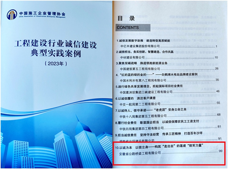 近日,從中國施工企業(yè)管理協(xié)會傳來喜訊,公司入選“2023年工程建設行業(yè)誠信建設典型實踐案例”。