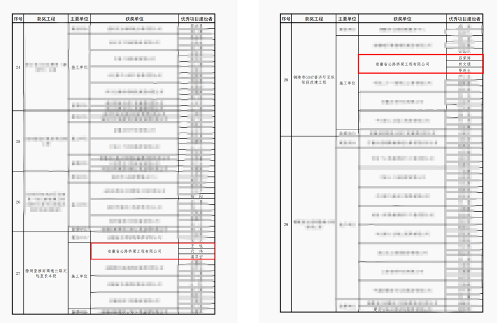 近日,中國公路建設(shè)行業(yè)協(xié)會公布2022~2023年度(第二批)公路交通優(yōu)質(zhì)工程獎(李春獎)名單,公司參建的滁州至淮南高速公路定遠至長豐段、銅陵市G347普濟圩至樅陽段改建工程2個項目榜上有名。截至目前,公司已摘得12項“李春獎”。