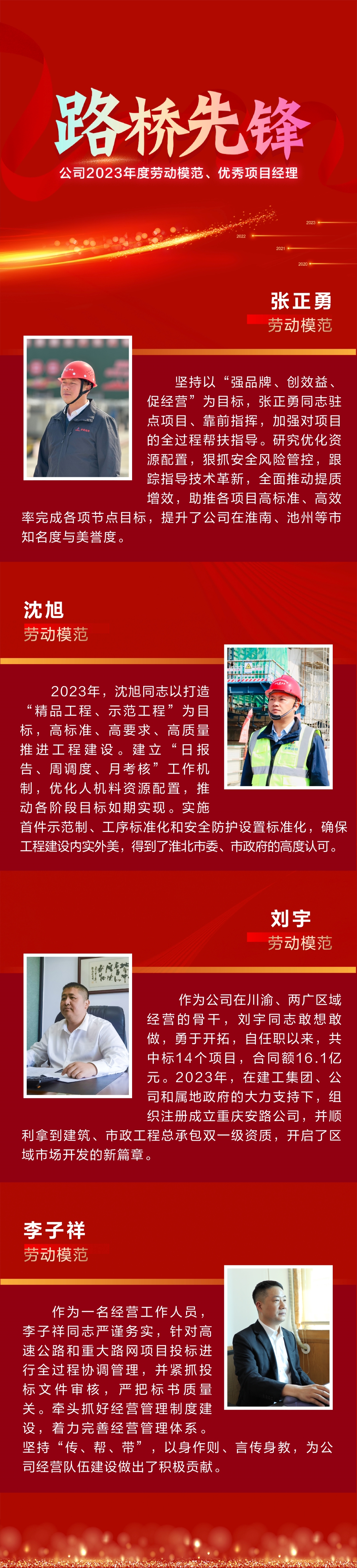 【路橋先鋒】公司2023年度勞動(dòng)模范、優(yōu)秀項(xiàng)目經(jīng)理風(fēng)采展示② 發(fā)布時(shí)間:2024年03月19日 來(lái)源:黨委組織部(人力資源部、黨委宣傳部)、所屬各單位 發(fā)布人:黨委組織部(人力資源部、黨委宣傳部) 作者: 瀏覽:2399次