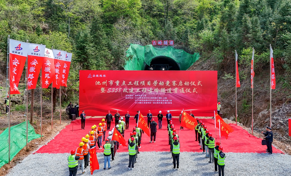 池州市重點工程項目勞動競賽啟動儀式暨S358改建工程古嶺隧道貫通儀式成功舉辦