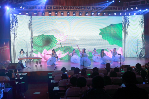 文藝匯演融聲樂(lè)、器樂(lè)、舞蹈、相聲、小品、朗誦、情景劇等多種藝術(shù)形式為一體,青春時(shí)尚元素與傳統(tǒng)元素完美結(jié)合,多角度、多視點(diǎn)營(yíng)造出昂揚(yáng)向上、全員同樂(lè)的節(jié)日氣氛。