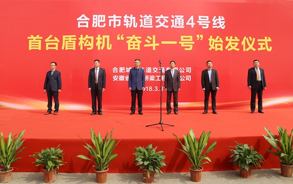 陽春三月生機勃發(fā),奮斗一號掘進始發(fā)。3月31日上午,公司首臺盾構機“奮斗一號”在軌道交通4號線1標長寧大道站順利始發(fā),標志著合肥軌道交通4號線正式進入盾構施工階段。合肥市軌道公司總經(jīng)理羅斌,安徽建工集團副總經(jīng)理王厚良,公司董事長、黨委書記、總經(jīng)理孫學軍等領導和參建單位代表出席始發(fā)儀式。10時16分,羅斌宣布“奮斗一號”正式始發(fā)。儀式結束后,與會領導與專家深入始發(fā)現(xiàn)場、管片存放區(qū)檢查指導。