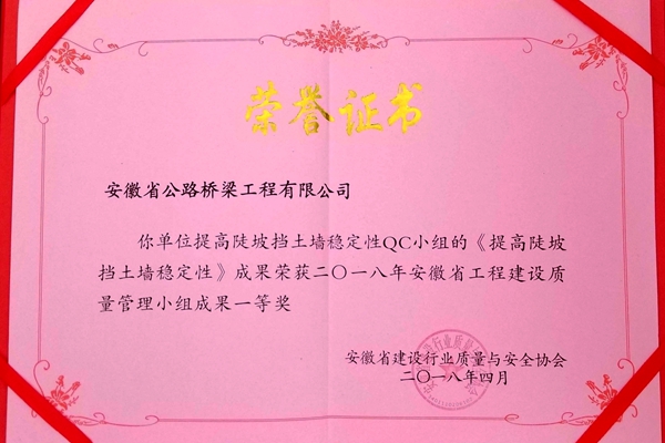 道路分公司三項(xiàng)成果喜獲省建筑企業(yè)QC小組活動(dòng)成果獎(jiǎng)