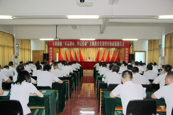 為進(jìn)一步推深做實(shí)“不忘初心、牢記使命”主題教育,按照公司主題教育方案部署,8月2日下午,股份公司副總經(jīng)理、公司黨委書記、董事長(zhǎng)孫學(xué)軍以“守初心 擔(dān)使命 找差距 抓落實(shí)——用習(xí)近平新時(shí)代中國特色社會(huì)主義思想指導(dǎo)打造品質(zhì)路橋卓越路橋”為主題,作了一場(chǎng)主題教育黨課暨形勢(shì)政策報(bào)告會(huì)。集團(tuán)主題教育第四指導(dǎo)組副組長(zhǎng)王永來到會(huì)指導(dǎo)。公司領(lǐng)導(dǎo),中層干部,在肥項(xiàng)目經(jīng)理、黨支部負(fù)責(zé)人,機(jī)關(guān)全體黨員100余人參加了報(bào)告會(huì)。