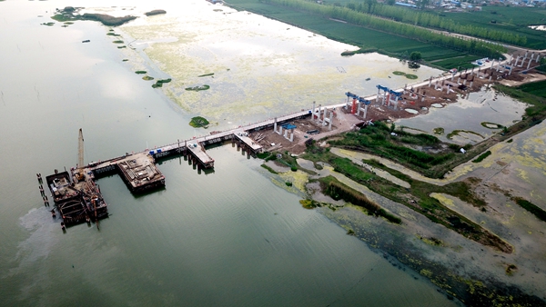 項目自節(jié)后復工以來,在確保疫情防控到位的前提下,圍繞年度產值目標,倒排工期,探索應用新工藝,優(yōu)化資源配置,同步推進主橋、路基和涵洞施工,全方位打響進度攻堅戰(zhàn)。各工區(qū)努力克服工期緊、長大樁基施工難題等多重壓力,與時間賽跑、用節(jié)點取勝,掀起大干熱潮。3月中旬,澮河特大橋24根主墩樁基全部完成;4月初,南引橋樁基完成,39號主墩左幅第一座鋼圍堰合攏,節(jié)點性工程的突破大大減輕了即將來臨的防洪度汛壓力,為上部結構平穩(wěn)過渡提供了堅實保障。
