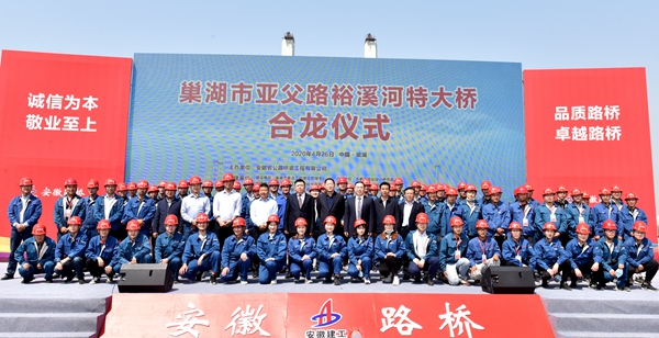 4月26日,由公司承建的皖中新地標(biāo)巢湖亞父路裕溪河特大橋經(jīng)過(guò)2年多的建設(shè)順利合龍。巢湖市副市長(zhǎng)張明權(quán)參加合龍儀式并宣布大橋正式合龍,股份公司黨委副書記、副總經(jīng)理孫學(xué)軍,巢湖市重點(diǎn)工程建設(shè)管理中心主任曾瑾、居巢經(jīng)濟(jì)開(kāi)發(fā)區(qū)管委會(huì)主任王慶林、巢湖市地方海事處處長(zhǎng) 沐小平、合肥市規(guī)劃設(shè)計(jì)研究院院長(zhǎng)黃從俊,公司領(lǐng)導(dǎo)錢申春、任杰、杜海峰出席合龍儀式。