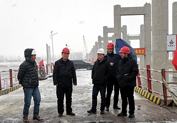 錢東升察看了澮河特大橋施工現(xiàn)場,詳細(xì)了解了工程進(jìn)展情況及存在的問題,肯定了項目2020年各項工作成績。他強(qiáng)調(diào),要繼續(xù)自我加壓,努力克服雨雪寒潮等天氣影響,在確保安全的前提下,多措并舉加快工程進(jìn)度;要高度重視、嚴(yán)格把控實體質(zhì)量,切實提升工程品質(zhì),把固蚌高速按期、平安、優(yōu)質(zhì)建成建好,堅決打贏2021年“縣縣通”高速攻堅戰(zhàn)。