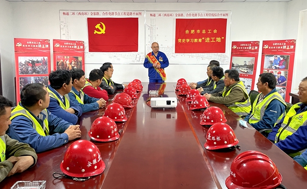 近日,由合肥市總工會組織開展的黨史學(xué)習(xí)教育“進(jìn)工地”宣講活動來到暢通二環(huán)(西南環(huán))項(xiàng)目,全國勞動模范徐輝為一線建設(shè)者作主題宣講報告。