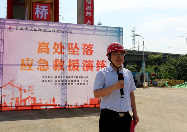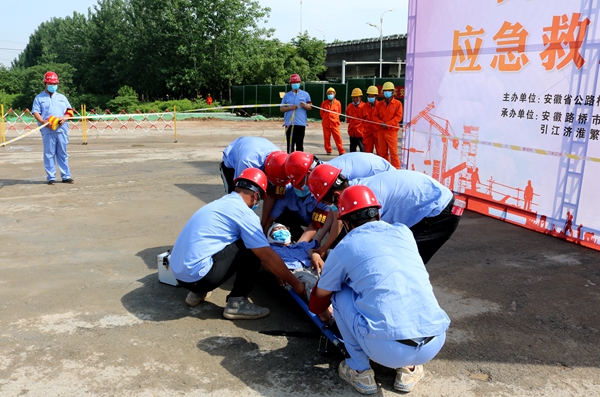 5月29日,公司在引江濟淮繁華大道項目舉行高處墜落事故應急演練。公司領導班子及機關各部門負責人、分子公司領導班子成員、各項目經(jīng)理、繁華大道項目全體員工及工友代表參觀演練。